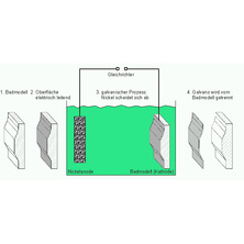 Mit Hilfe der Galvanoformung lassen sich Formen durch galvanische Nickelabscheidung auf einem sog. Badmodell herstellten. Die Schicht ist porenfrei und hat eine Schichtstärke von bis zu 10 mm. Das Modell kann dann als selbstständige Form (Werkzeug) verwendet werden.