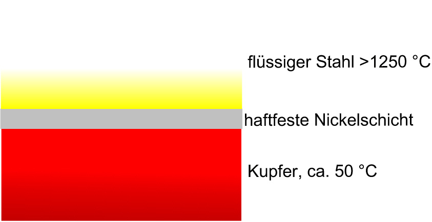 Durch diese extremen Temperaturgradienten wirken gewaltige Kräfte auf die Nickelschicht. Eine schlechthaftende Schicht würde sich wegen der sehr hohen Spannungen sofort ablösen.